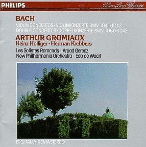 这张唱片收有巴赫两首小提琴协奏曲,不过乐队表现得冲劲有余,未免稍有遗憾。而格鲁米欧与克雷伯斯合作的双小提琴协奏曲,也许是两把小提琴富有活力的竞奏合作的缘故,而乐队部分也像是稍稍添了几分端庄,整个儿气氛就出来了,显示出了巴赫的风格。